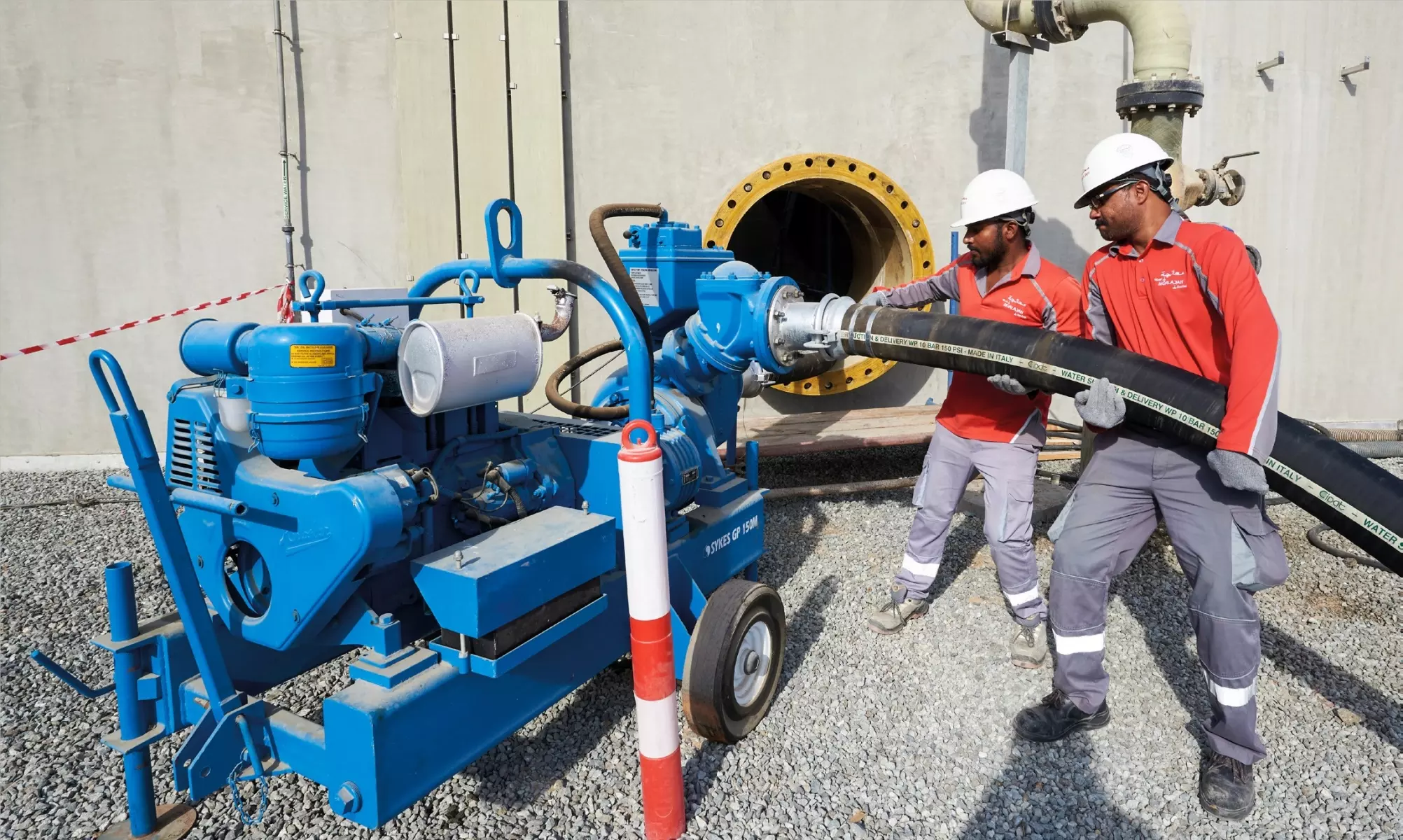 Over-pumping arrangements Moalajah Services offers over-pumping arrangements that include the installation of pipes and pumps of up to 5,400 cubic meter per hour, as well as the operation of pumps and level control during the required period.